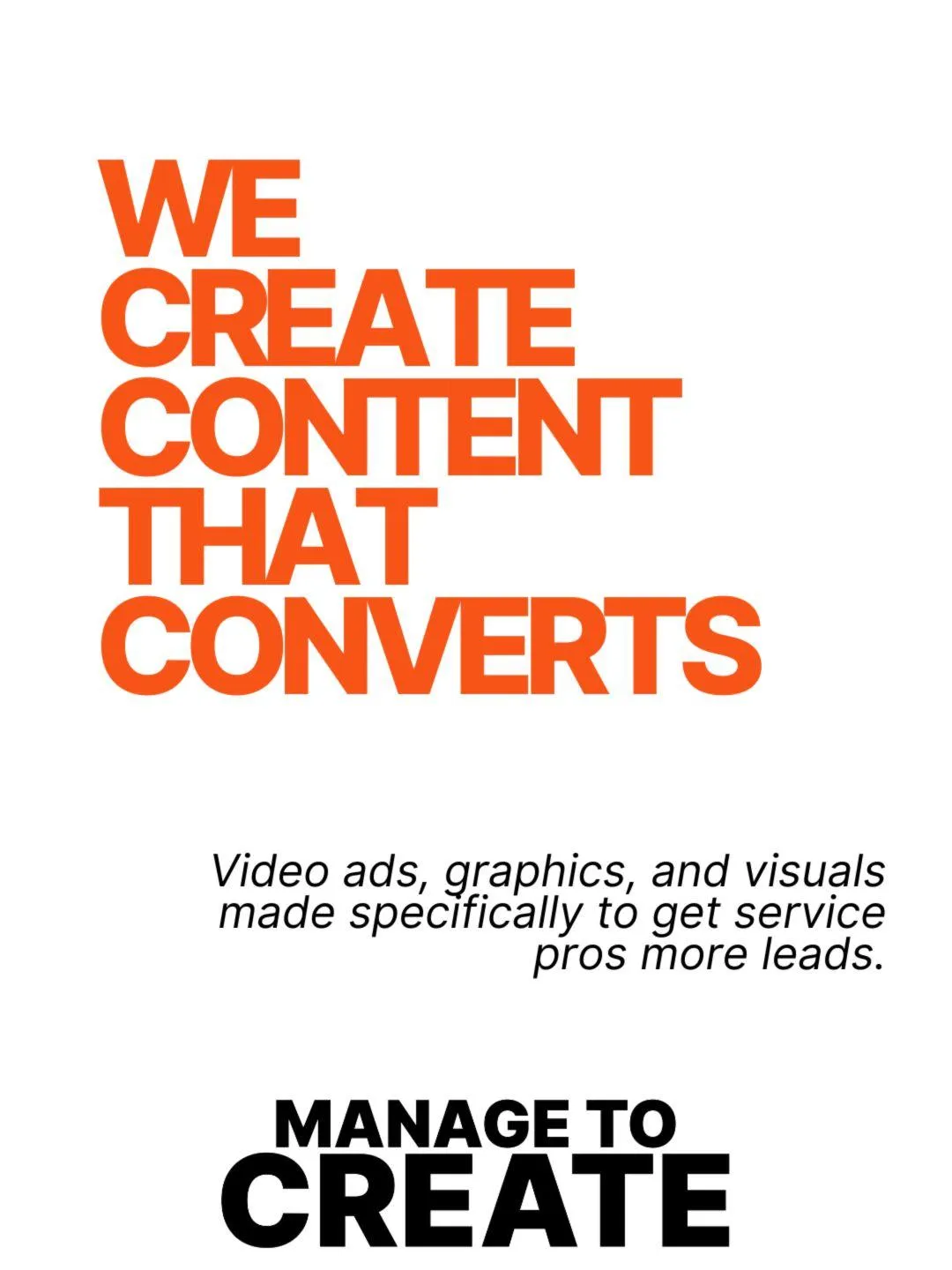 Manage to Create is a Wichita marketing agency specializing in content creation, video production, local lead generation, and a Custom GoHighLevel system setup for small service businesses in Kansas and beyond. We help roofers, plumbers, med spas, landscapers, and contractors grow with strategy-first marketing.